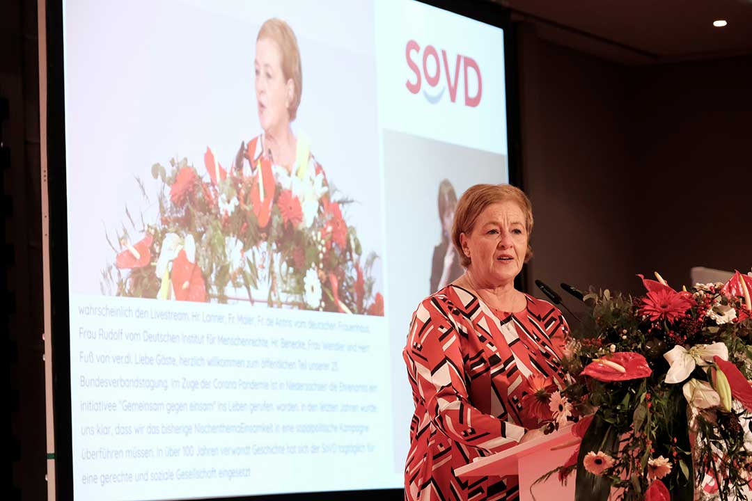 Sie sprach über die Entstehung der SoVD-Kampagne „Gemeinsam gegen einsam“ und die viele Facetten von Einsamkeit in der Gesellschaft – diese müsse deshalb auch als gesamtgesellschaftliches Anliegen betrachtet werden.