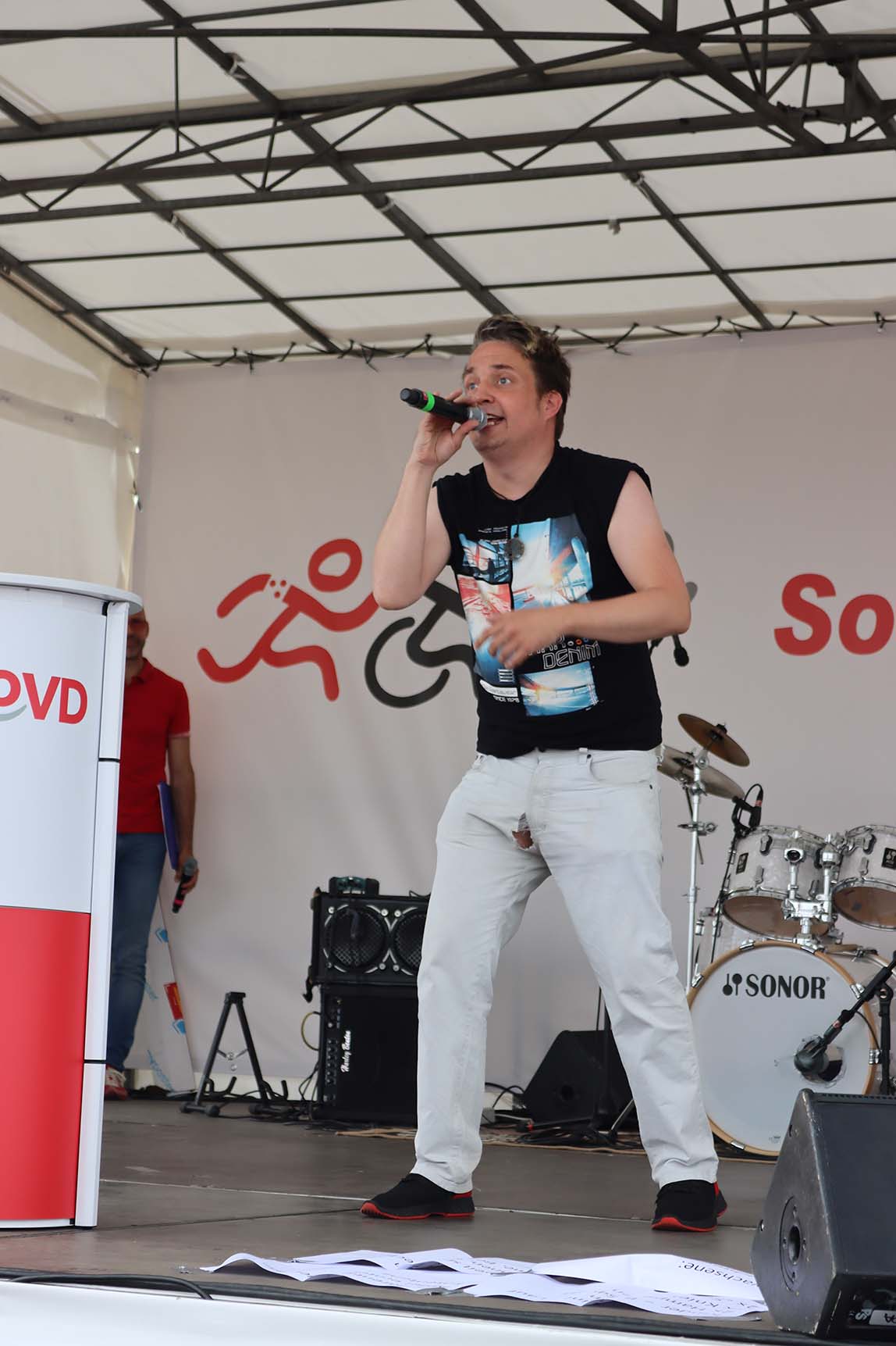 Etwa 600 Leute waren auf und an der Strecke. Zwischen den Läufen gab es auf der Bühne Musik und Talk mit Rafael Treite, der auch wieder im Start und Ziel moderierte. So klärte „Tourette-Botschafter“ Jean-Marc Lorber kurzweilig über „Tics“ auf und performte eigene Songs. Mit Gitarrenmusik heizte die inklusive Band „RockAntrieb“ ein.