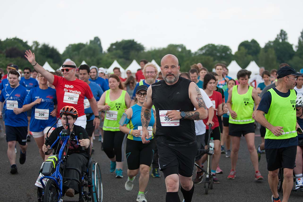 Hunderte Menschen aller Altersgruppen sowie mit oder ohne Behinderungen gingen am 25. Juni in Berlin gemeinsam an den Start. Foto: Sascha Pfeiler